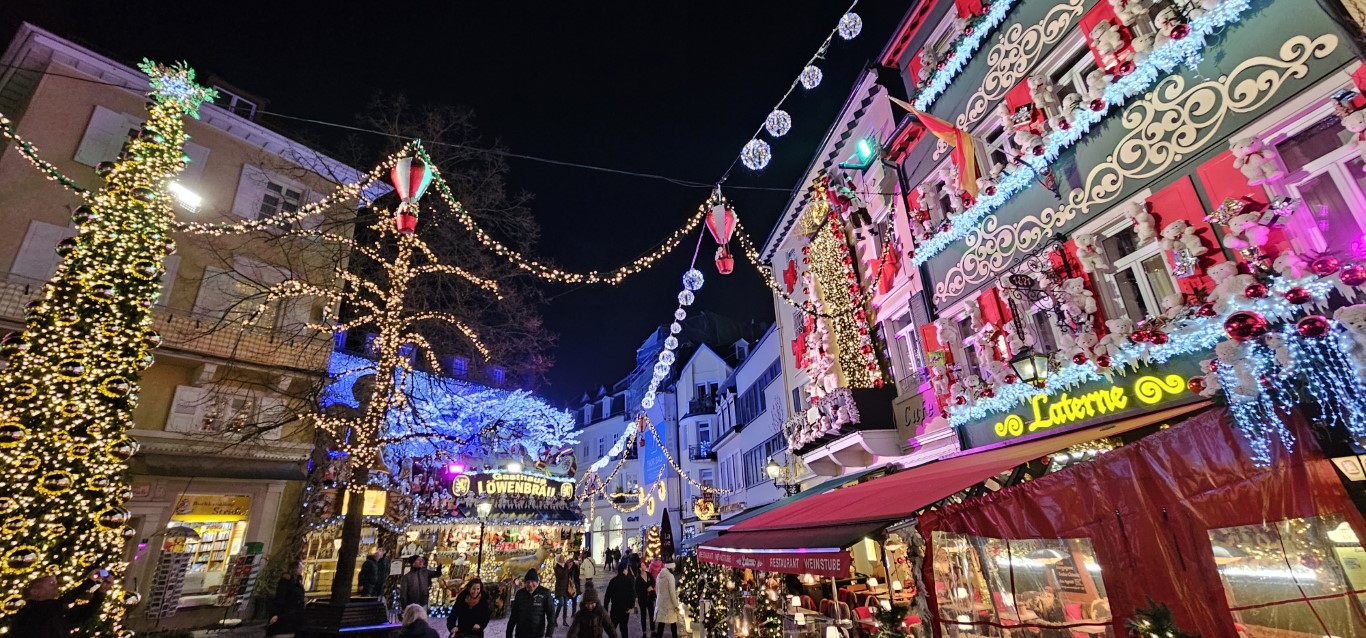 The Baden Baden Christmas Markets were concentrated in one large area, but the town had a few other square & boulevards of dazzling Christmas Lights & Displays.