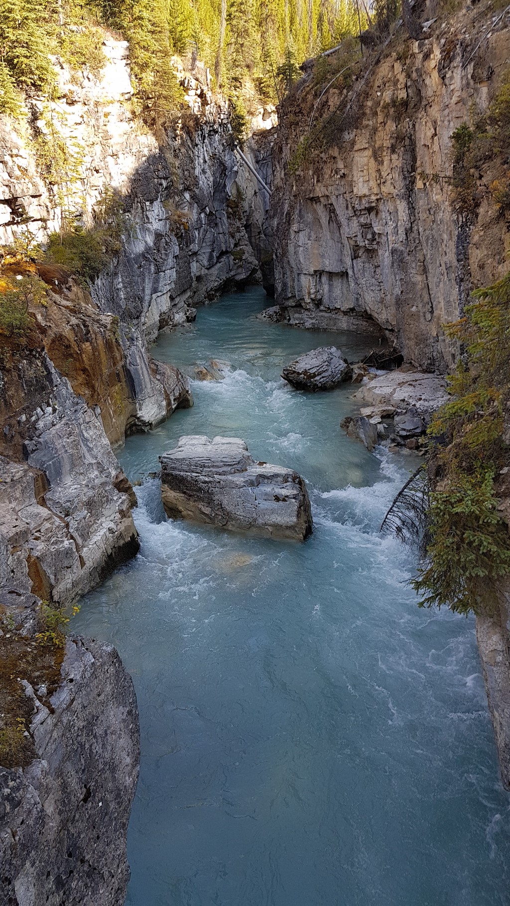 Wildfires had reports of road closures for my preferred route out of Banff National Park towards Radium Hot Springs, but 2 days before my drive that way, the road was opened, so I got to stop at Marble Canyon for one more (easier) canyon experience. Loads of great memories.