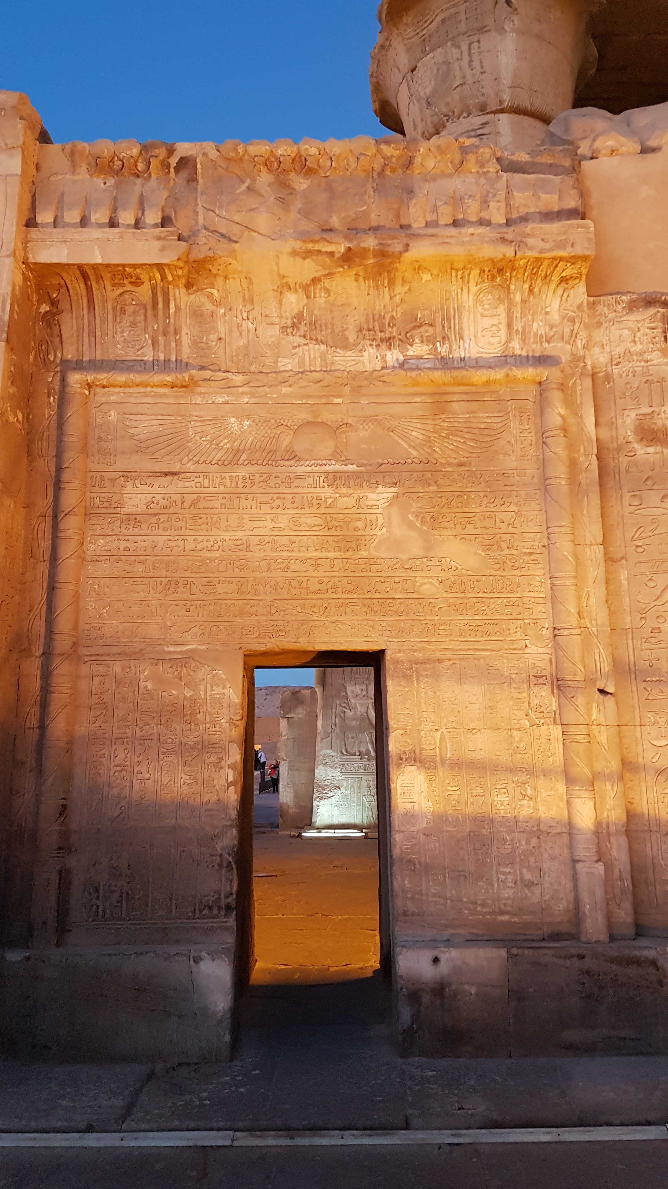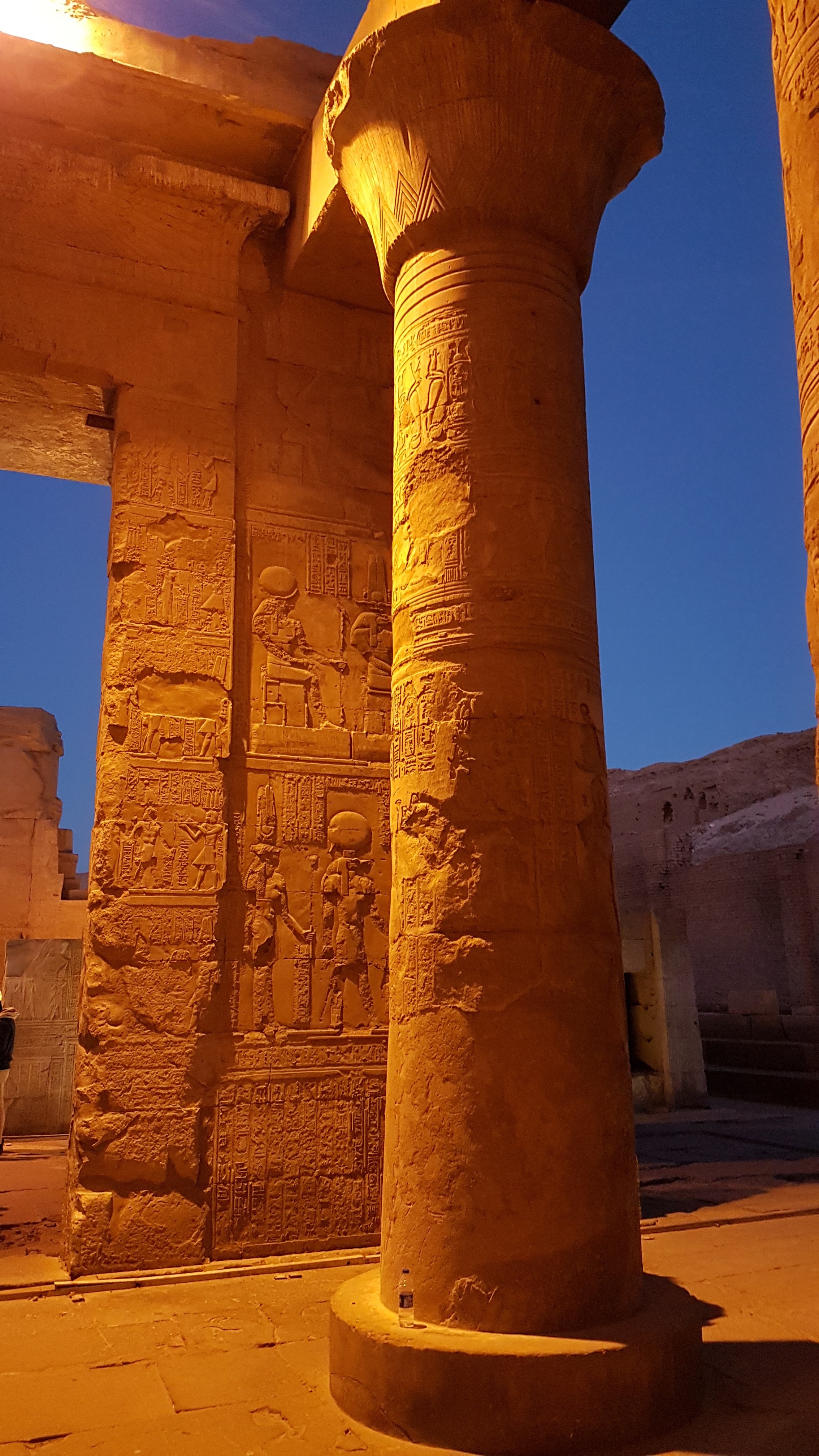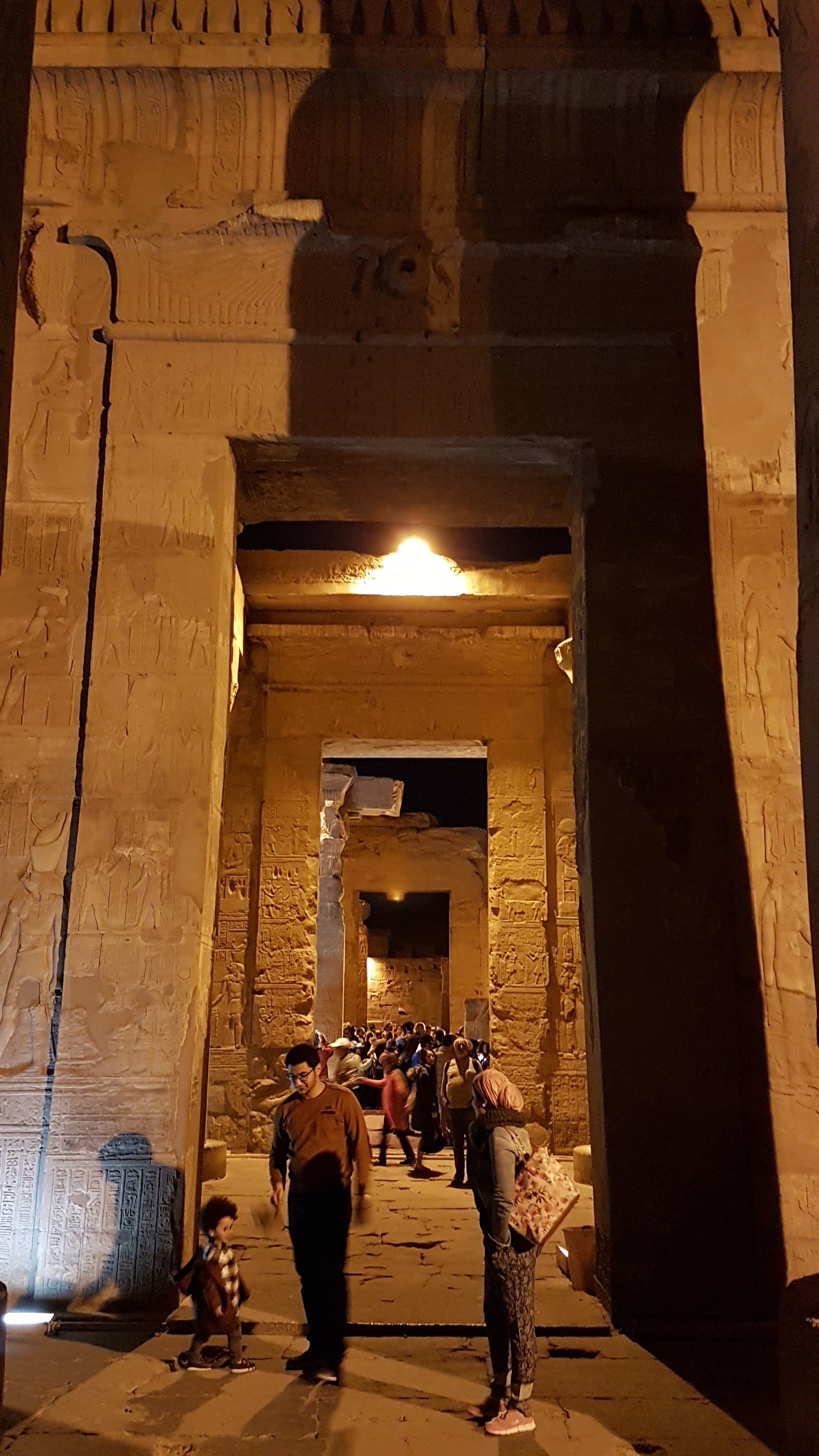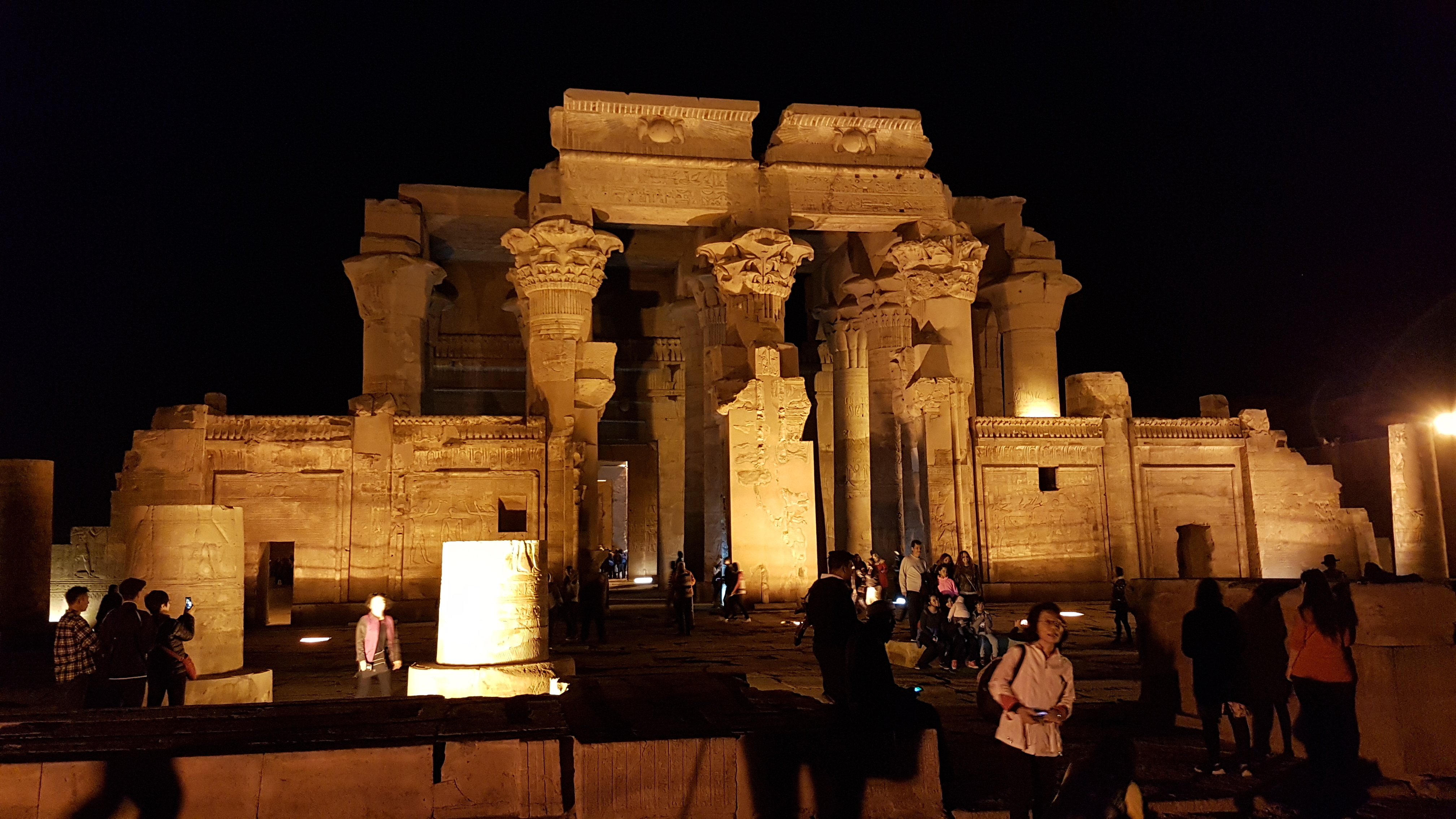 Night falls and the lights come on, changing the feel of the temple. Would have been much more interesting with less people and more time.