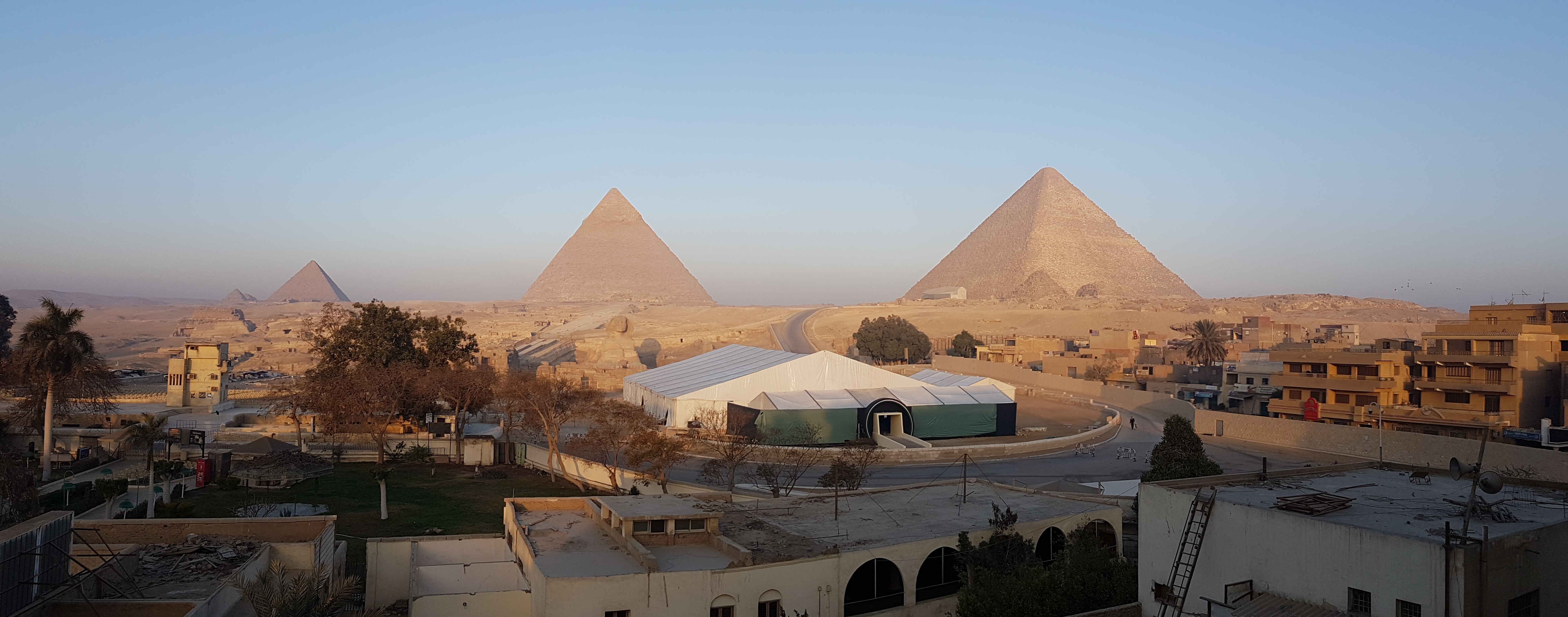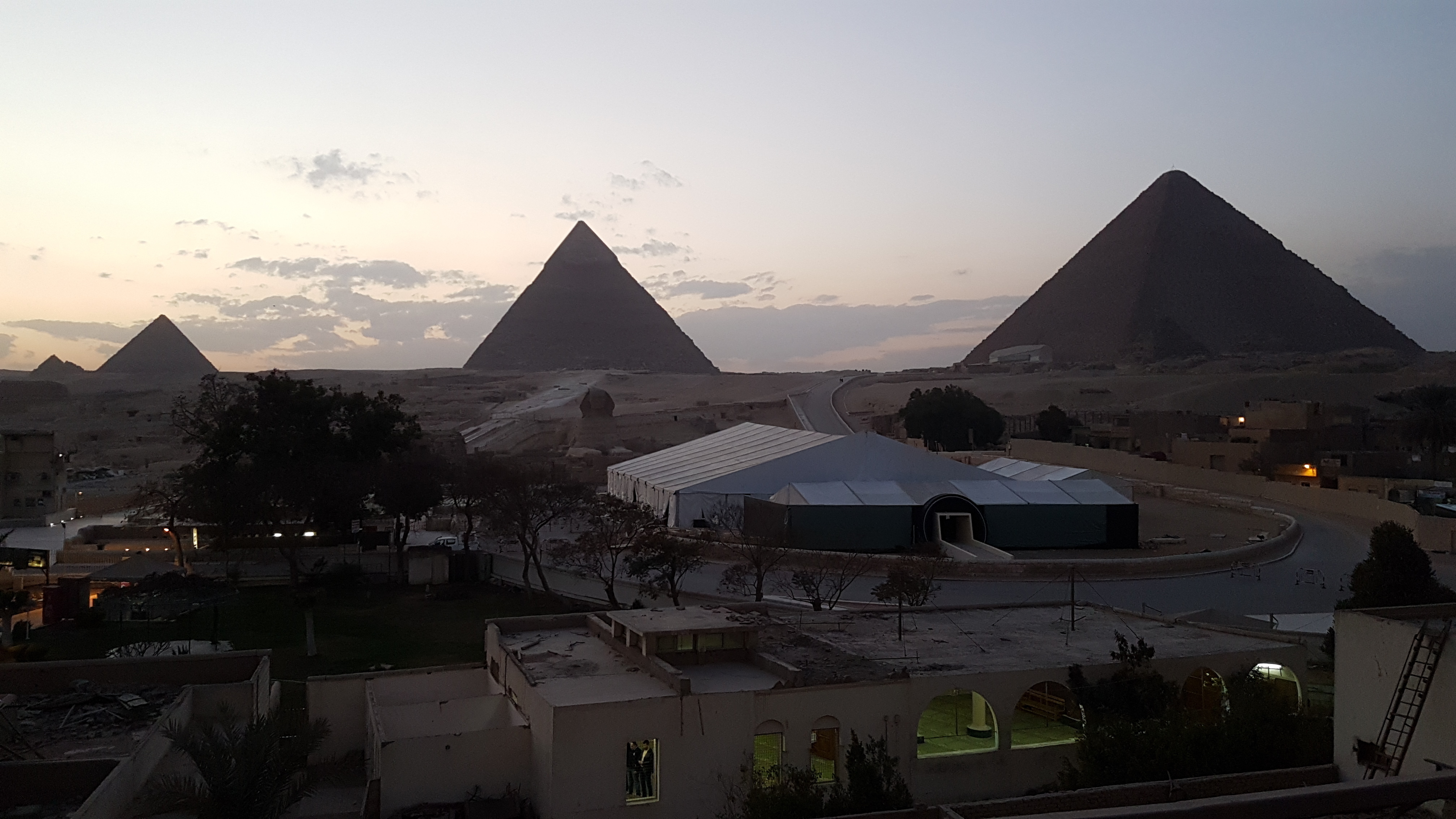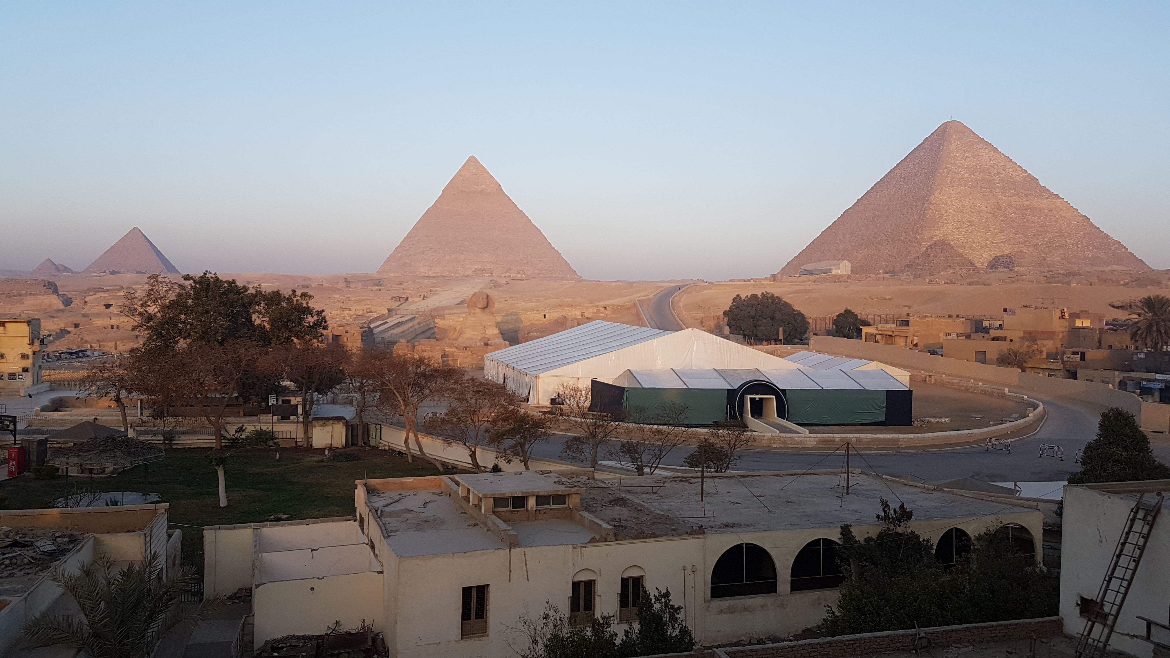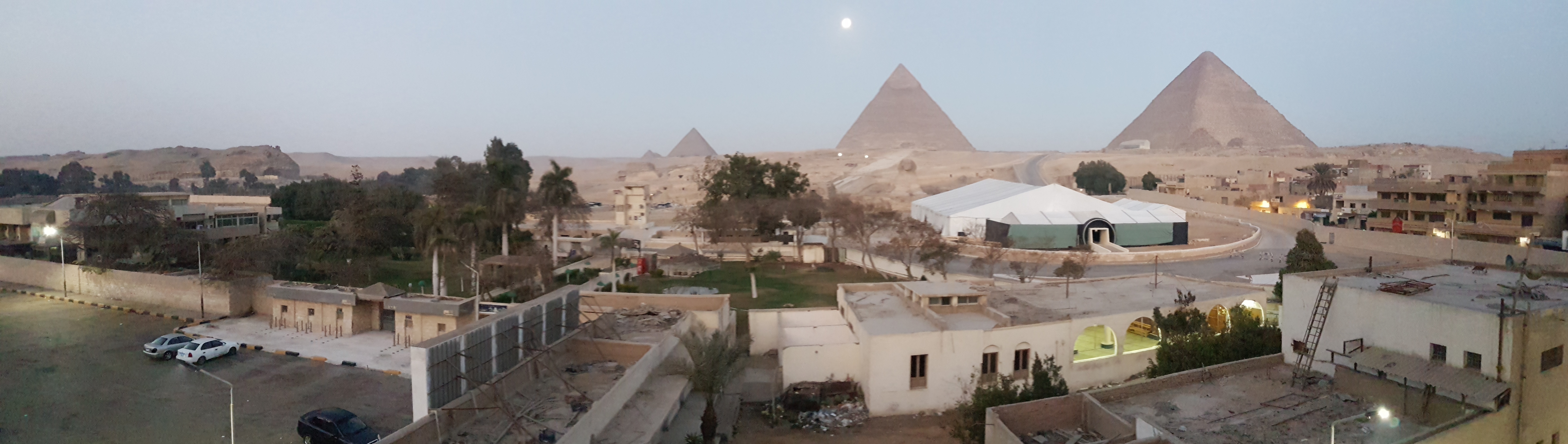 Breakfast at the Pyramids View Hotel was at their rooftop dining area, with this (beside) magic view of the moon setting over the centre pyramid Khafre, as the sun rose.