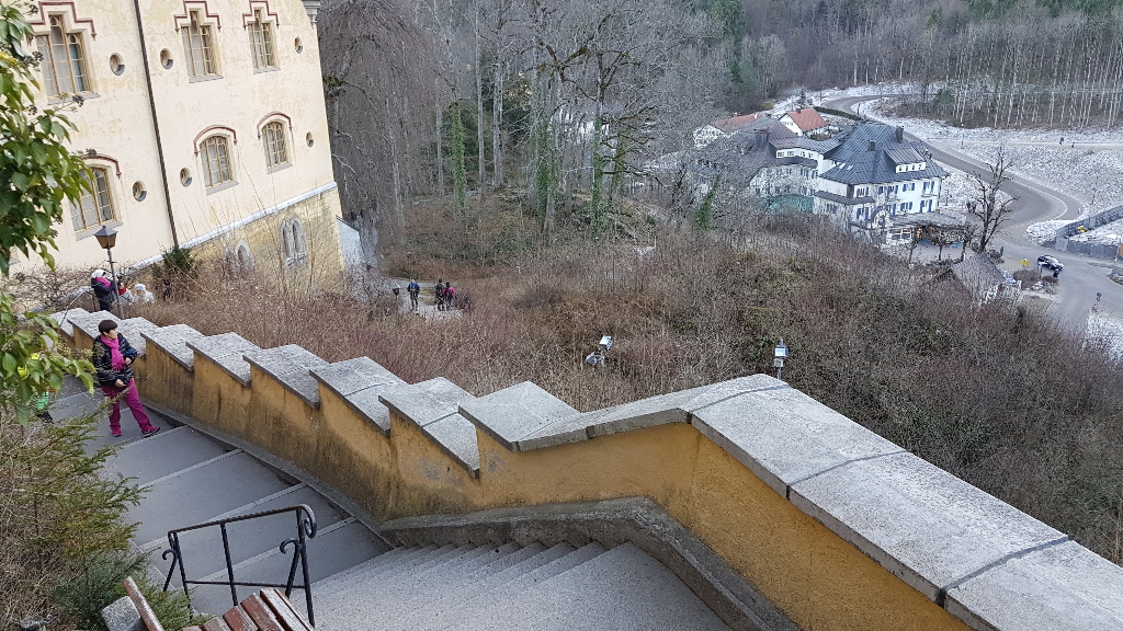 Hohenschwangau Castle is closest to the ticket booth, and a not too difficult 10-15minute walk up a winding staircase to the Castle where await your tour numbered entry time. No photos permited inside, so sorry, nothing to blog with there; but Hohenschwangau Castle was interesting as it was lived in.