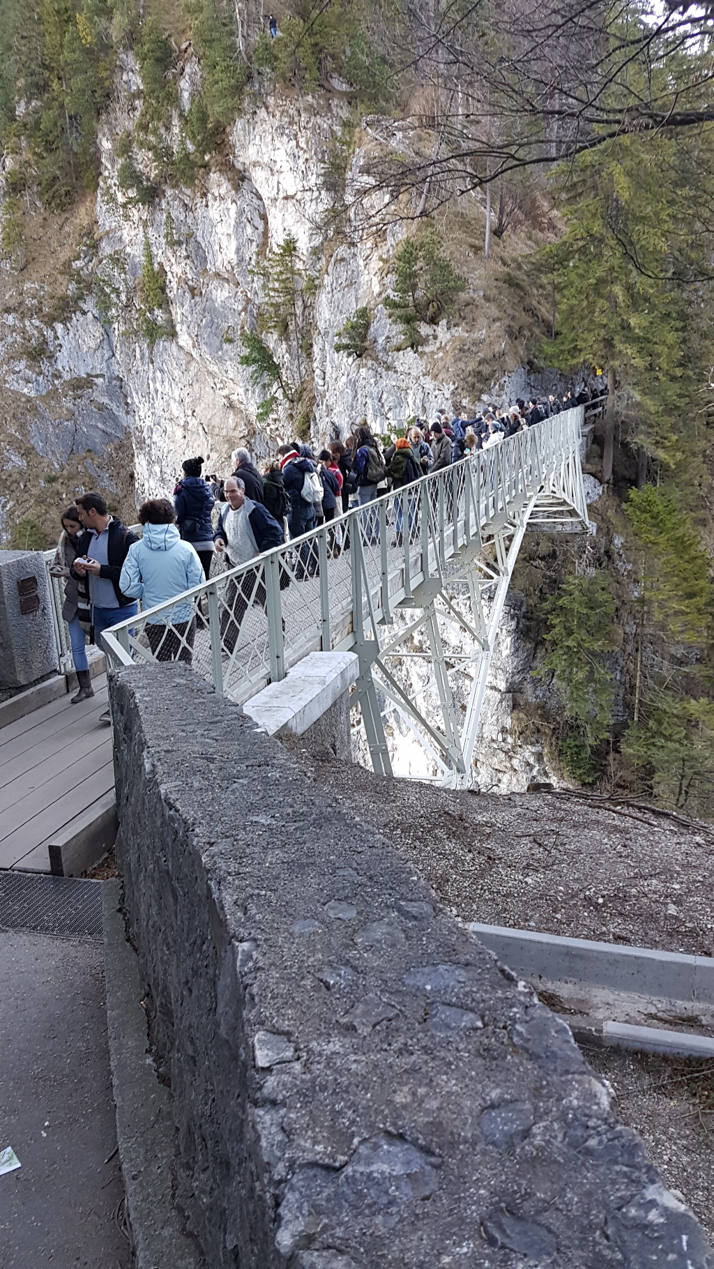 The famous photo’s are taken from the Marienbuckle, or bridge nearby (photos below) which provide a commanding view of the castle and backdrop; but you will see from the photo, it’s crowded. The planks on the bridge also bow and so if you have any concern of heights and alike, this is one to approach cautiously. I have no doubt it’s safe, but it can get your phobias going.