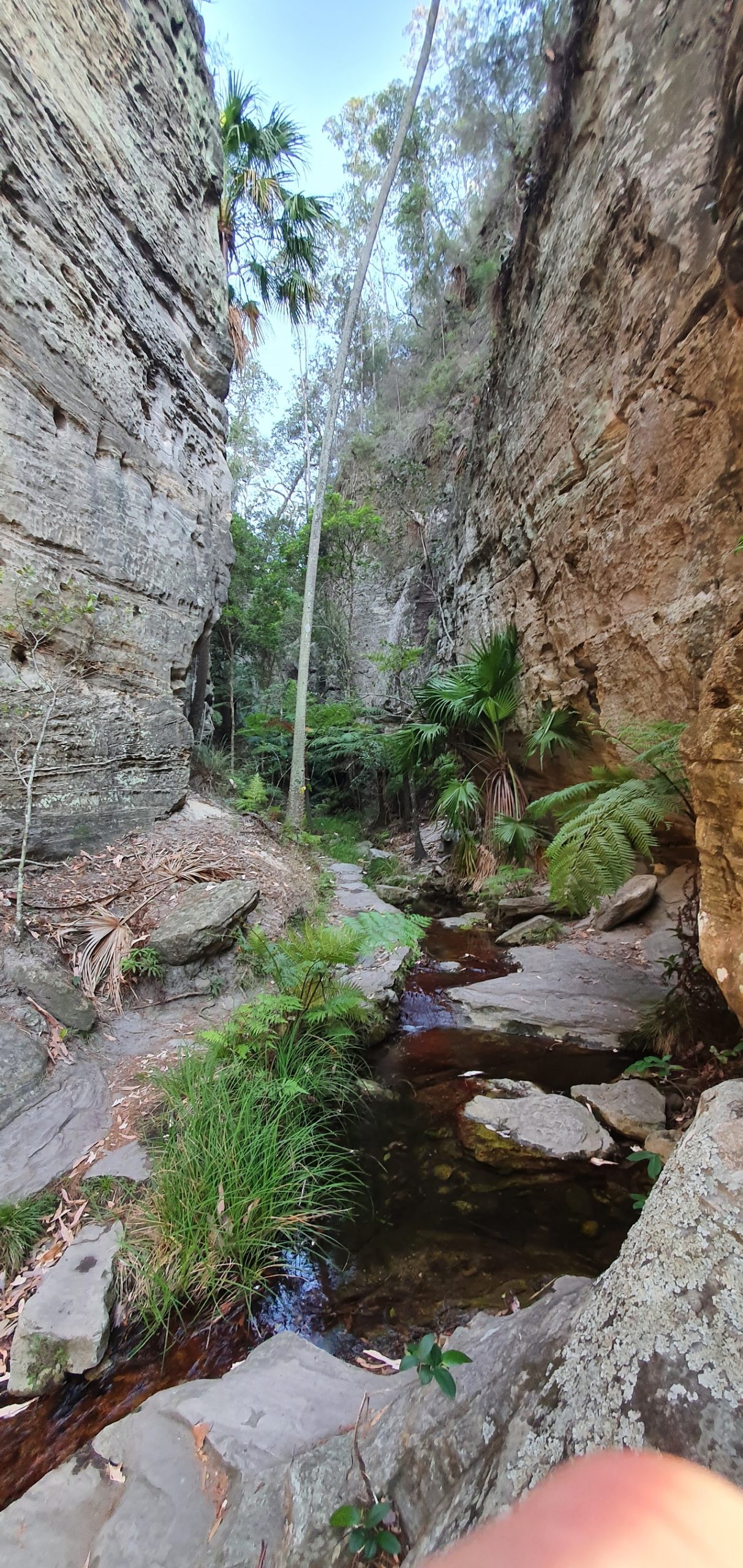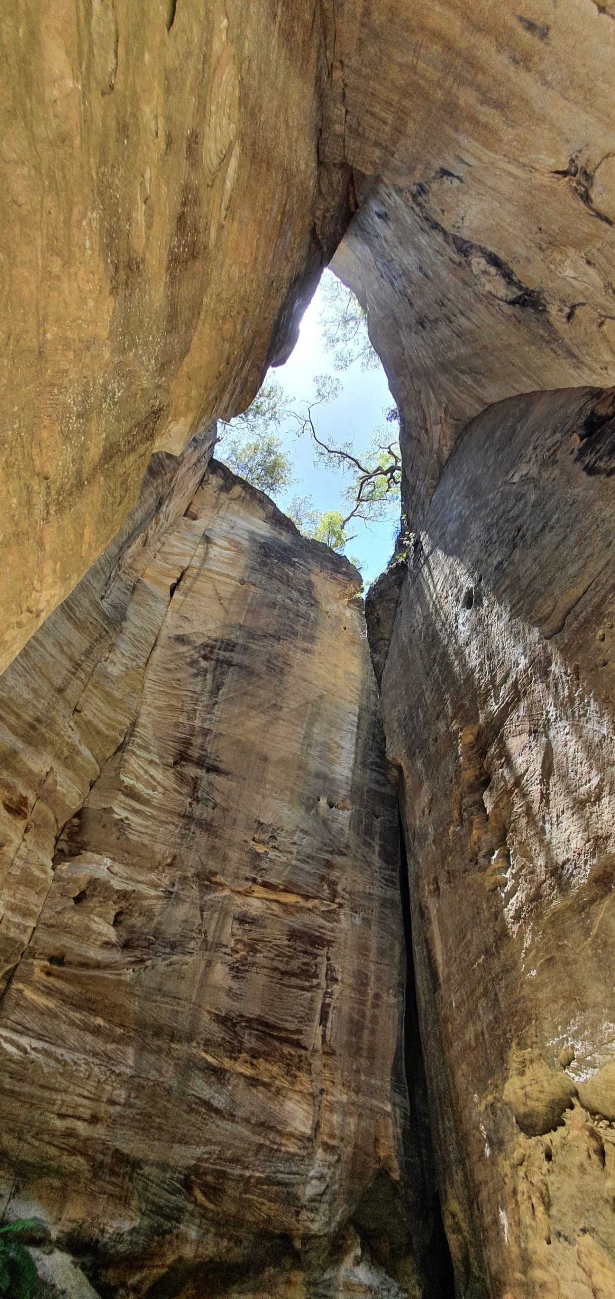 I left the Bush Resort at 4.30am to be on the trail by 5 am as the sun was rising. After many photo stops and simply to Look Up ! and take it all in, I returned 10 hours later, exhausted, having experienced Moss Garden, Amphitheatre, Wards Canyon, Art Gallery, Cathedral Cave, Boowinda Gorge and Big Bend. The rainfall water across the moss wall was serene (below)