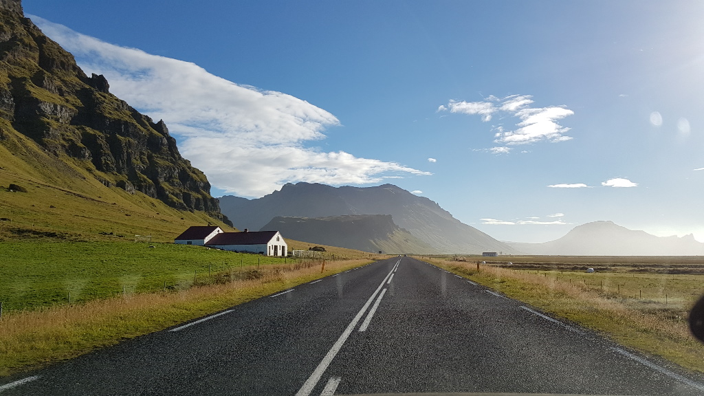 I had read, and certainly experienced, that most roads in Iceland are, for want of a better description, built as levy’s. 2 lanes only, elevated from the landscape, with quite a steep drop-off from the pavement and virtually no shoulder to pull off the road. So for driving safety, the dashcam mount gave me the ability to take these photos and video with little distraction to driving, especially as there is rarely somewhere to pull over and take a picture.
