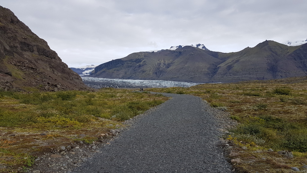 But, you can walk from the visitor centre to the Glacier face in about 25 to 30 minutes (and the same in return) to be able to see the glacier up close, and the small body of water and icebergs floating in front.