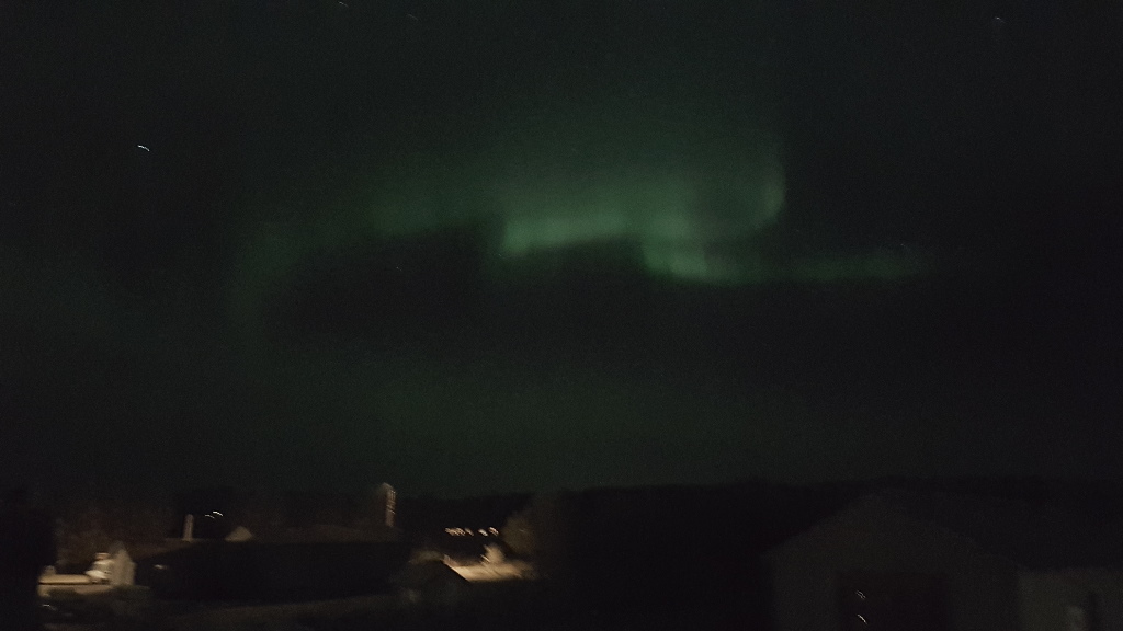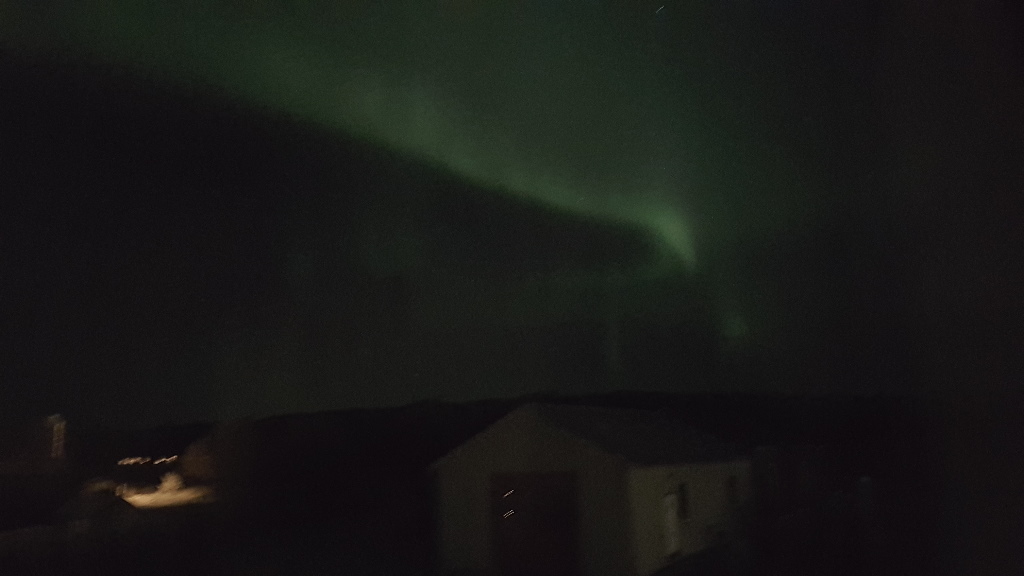So I arrive at my AirBnB and am told they often see the Northern lights, no need to trek into the darkness, so I grab an early sleep knowing I have to leave at 5am to catch an early flight; and at a little after 1am …..