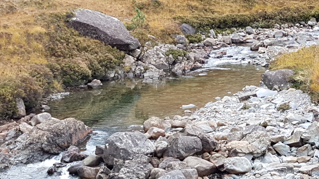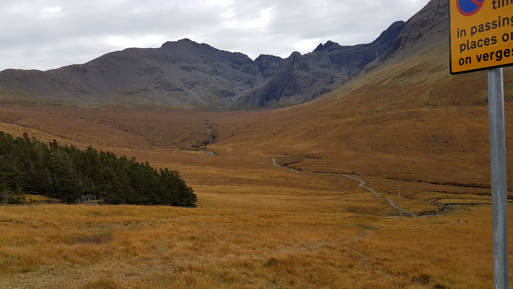 Anyway, having left Loch Ness, and stopped by Eilean Donan Castle, I drove out onto the Isle of Skye, and made my way to the Fairy Pools. On arrival, there was a small carpark on the right, evidently full, as there was a long string cars parked roadside, which I joined.