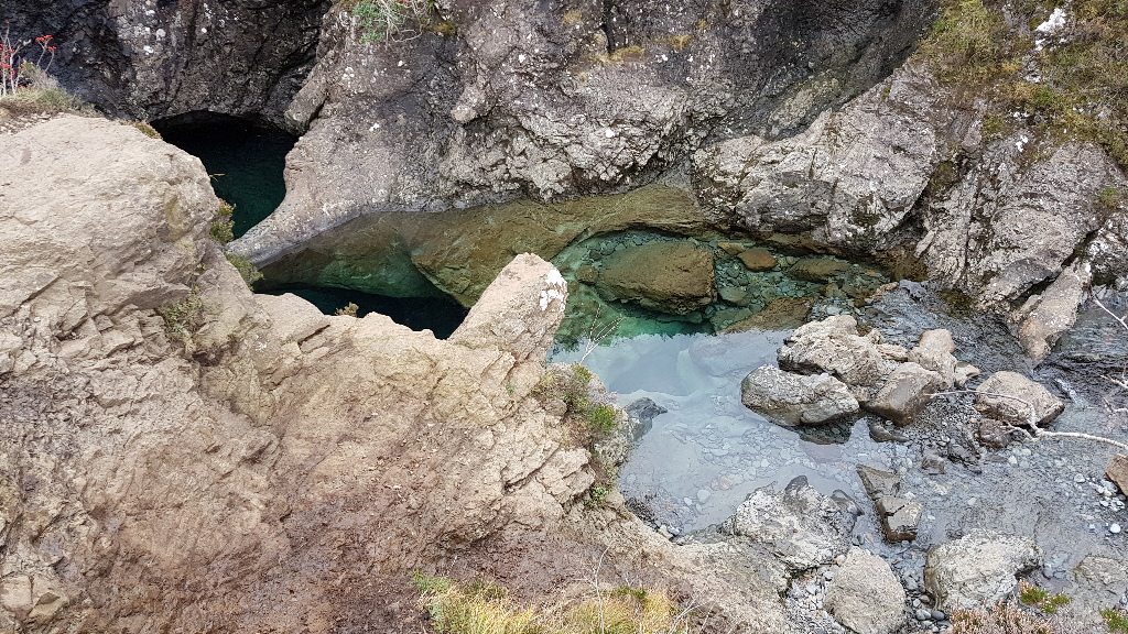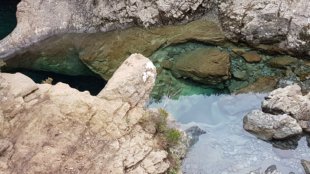 Increasing anticipation, you continue along the path, a couple of times hopping across small rock bridges across feeder streams, until you get to the main pools. Much deeper water, stunning in their clarity and colour.