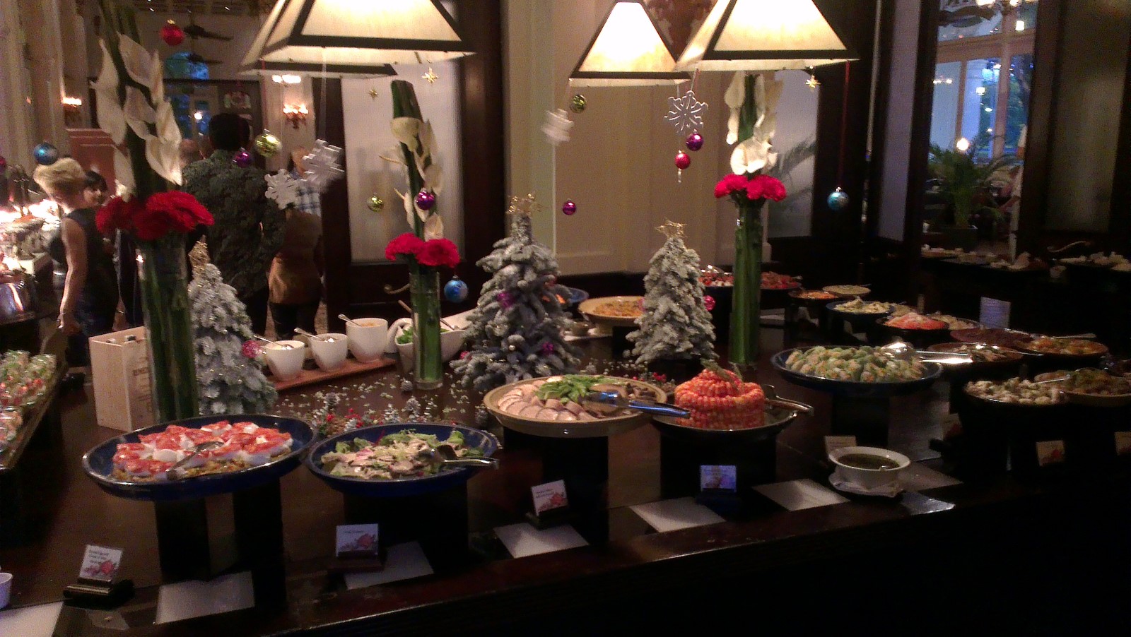 Fresh seafood, Lobster, variety of Oysters, meats, salads, deserts and bottomless champagne or Slings; it did not disappoint.
