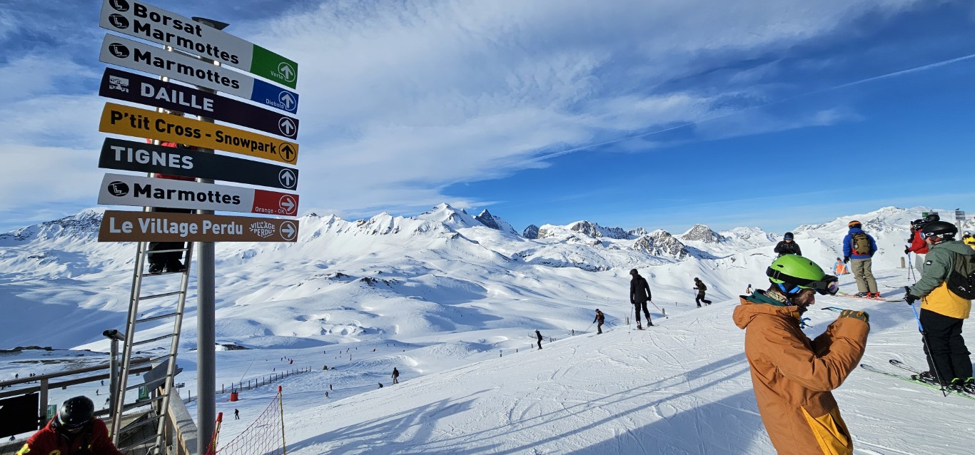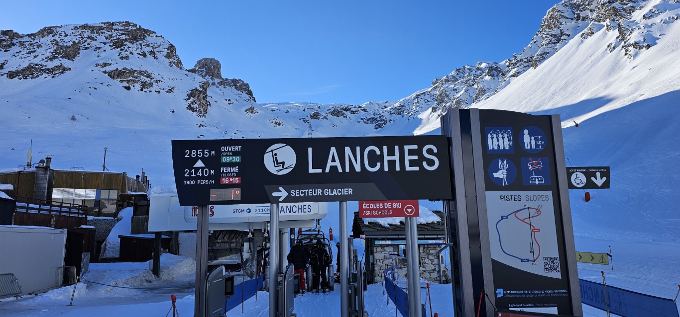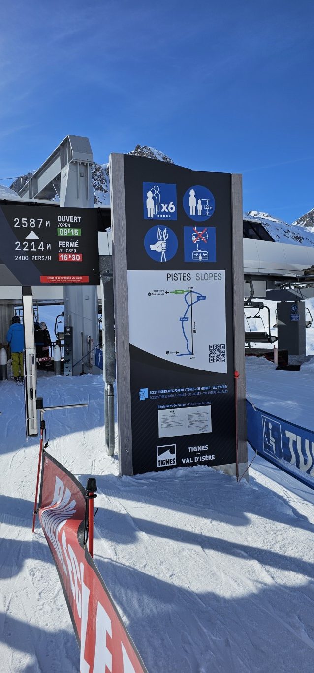 The other very notable difference is the logistics. Arriving to a mountain for the 1st time, interpreting the ski map and making your way around can be a bit daunting. Val d’Isere’s ski map includes arrows on run lines to clarify run direction when it is not obvious. They also have sign boards at most lift bases to let you know the runs and grades accessible from the top ! (picture right)