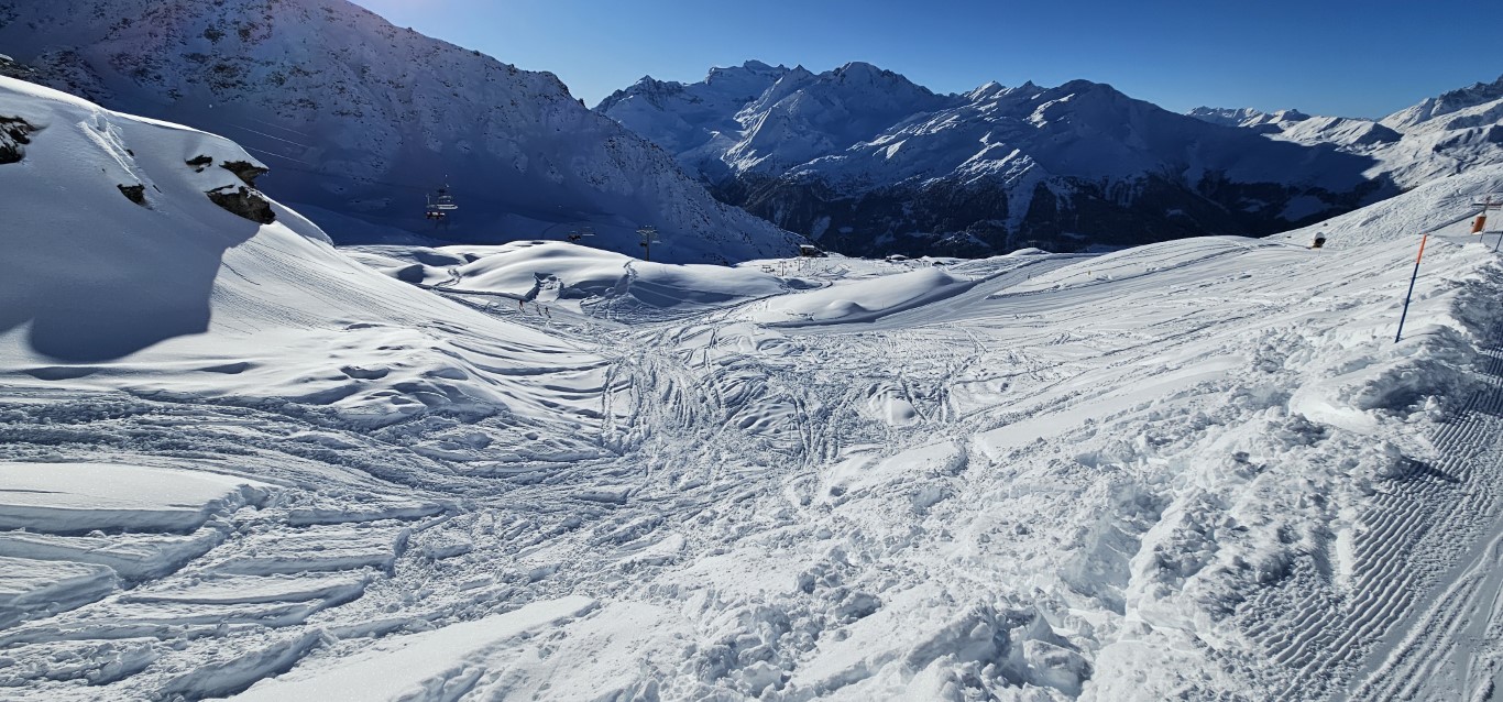 Verbier near the French border, touts an expanse of off-piste areas. So the piste “runs” are basically setting up access to enjoy off-piste, without going back-country.
