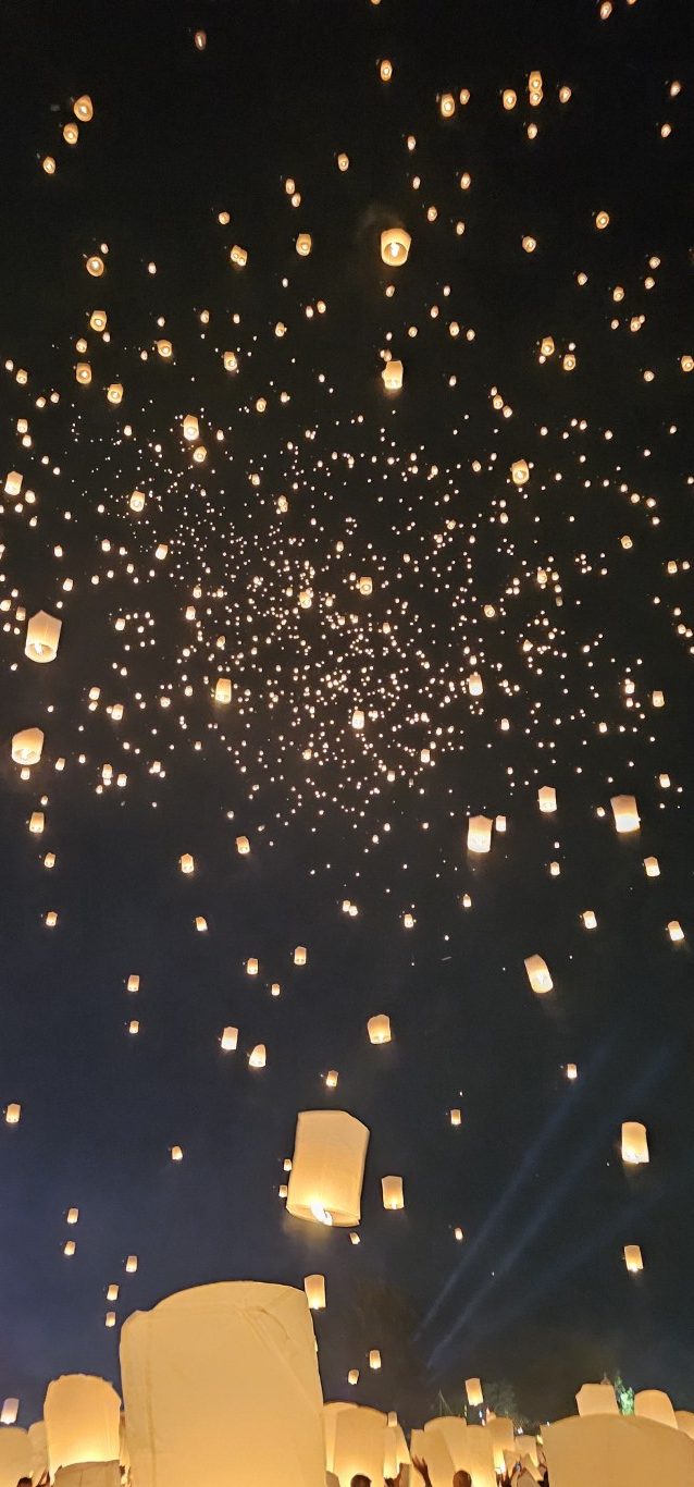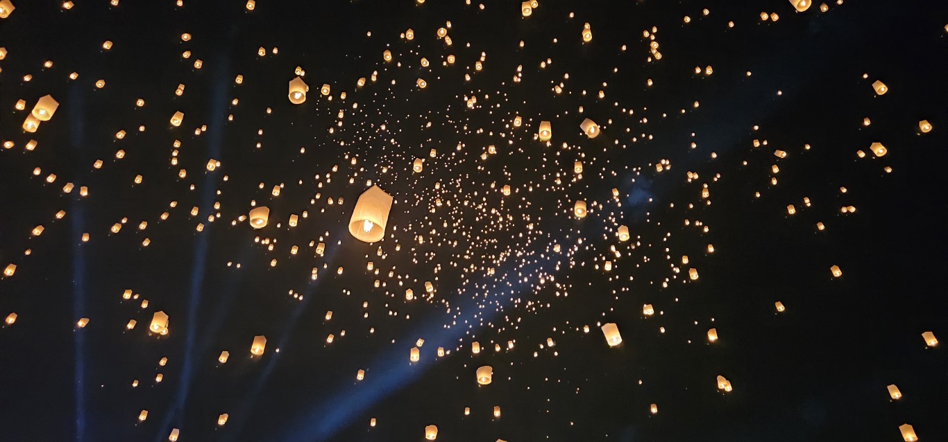 What a Spectacular ! The YiPeng Lantern Festival is held during the full moon in November each year, in conjunction with Loy Krathong. Simply put, YiPeng launches lanterns into the sky and Loy Krathong launches floating florals into the waters as part of wonderful cultural events.